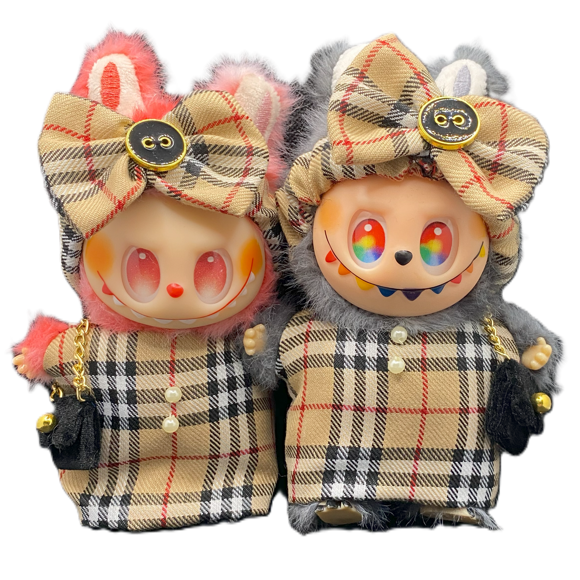 Bring timeless style to your Labubu with the Pinafore & Headband. Inspired by classic plaid and Burberry chic, this fashion-forward outfit is handmade for minis who love to stand out.