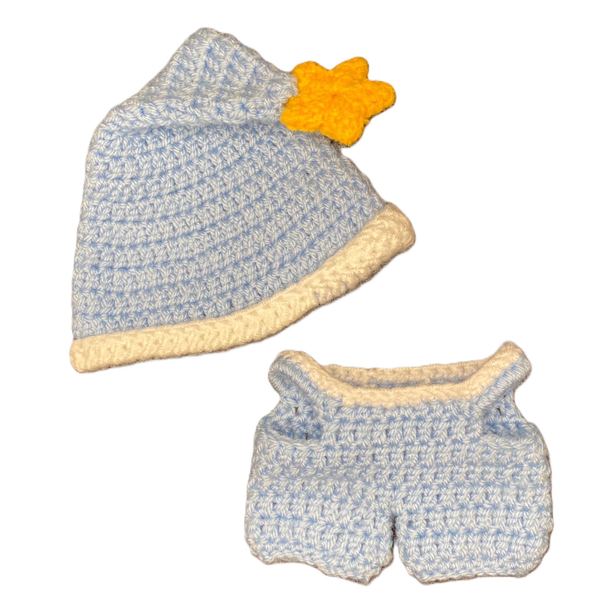 Handmade in soft light blue and white crochet, this bedtime outfit is dreamy, playful, and perfect for cozy styling. The matching hat adds the finishing touch, making it ideal for collectors, customizers and fashion-loving minis.