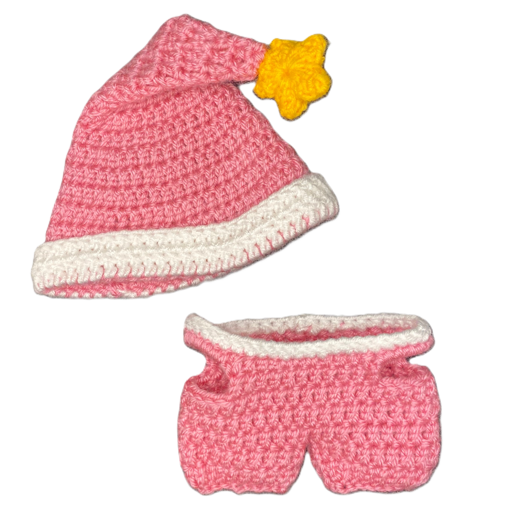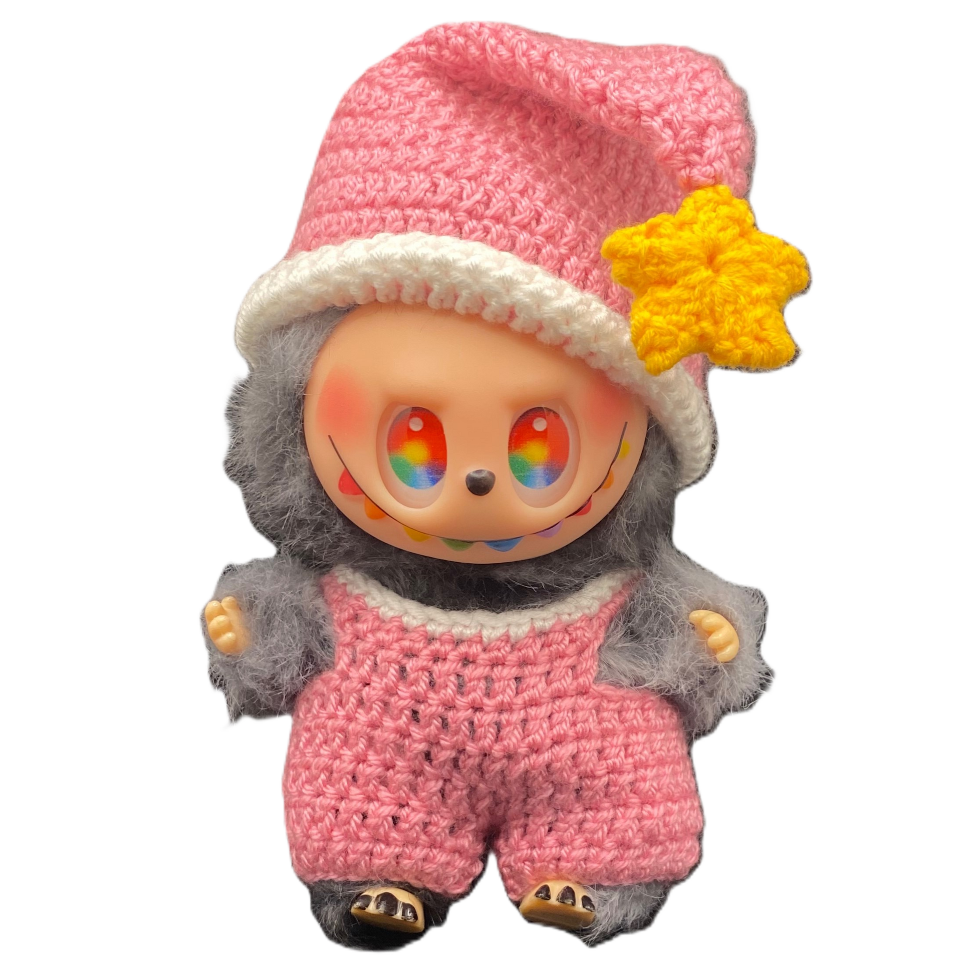Drift into sweet dreams with the Dreamy Pink Pajama & Hat Set. Handmade in delicate pink and white crochet, this cozy bedtime outfit brings soft, premium comfort to your Labubu doll’s wardrobe. The matching hat adds the perfect finishing touch, making it ideal for collectors, customizers, and fashion-loving minis.
